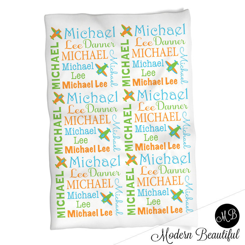 Personalized Airplane Baby Name Blanket Boy Red and Blue