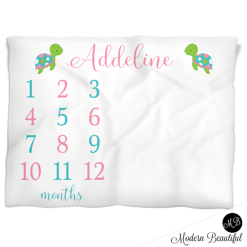Turtle Milestone Baby Blanket Personalized Girl Baby Growth Photo Blanket