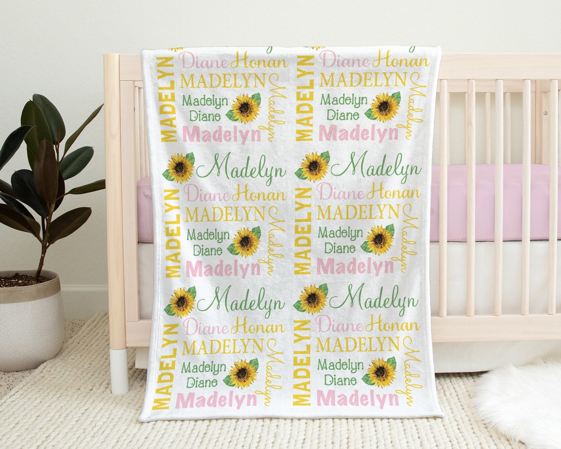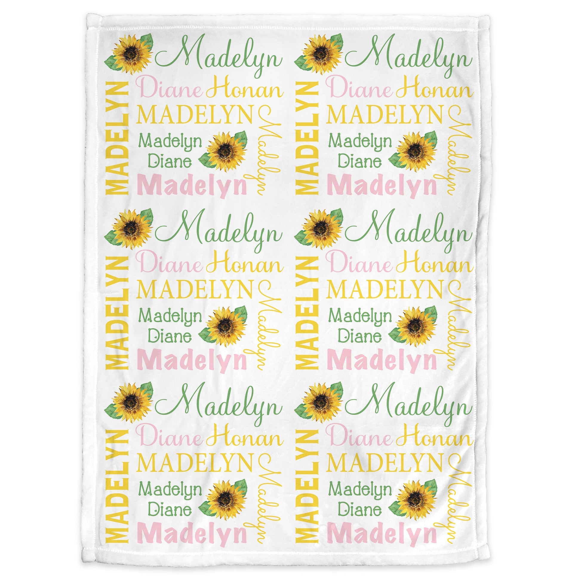 Personalized Sunflowers Baby Name Blanket Girl