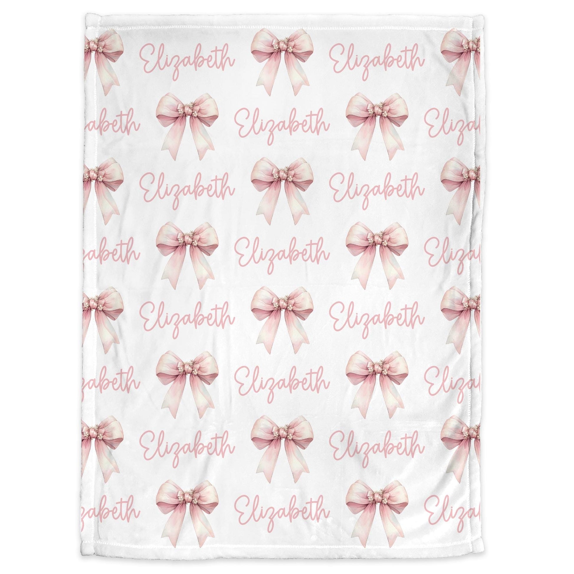 This personalized girl coquette baby blanket with bows makes a great baby gift.