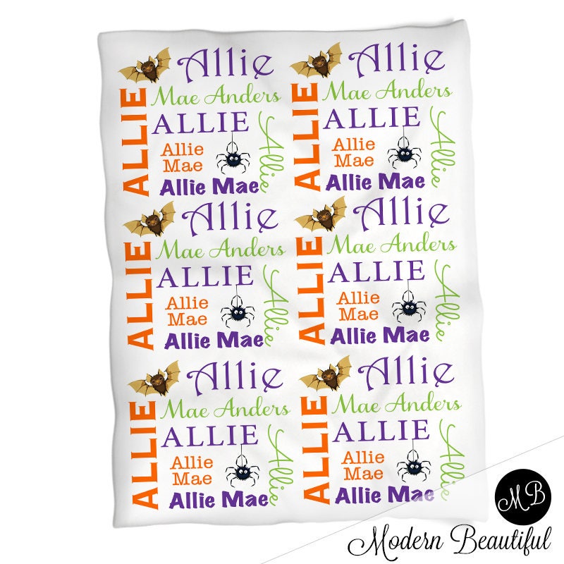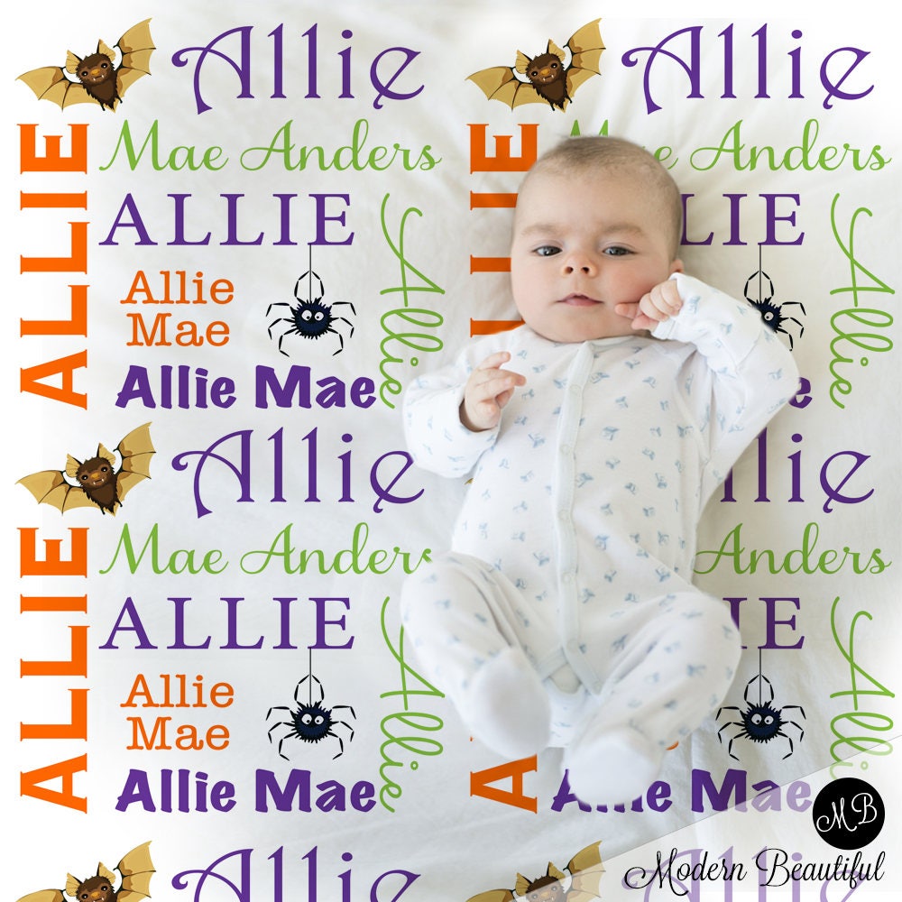 Personalized Halloween baby blanket, Halloween girl baby blanket, Babies first Halloween gift, bat baby blanket, spider baby blanket.
