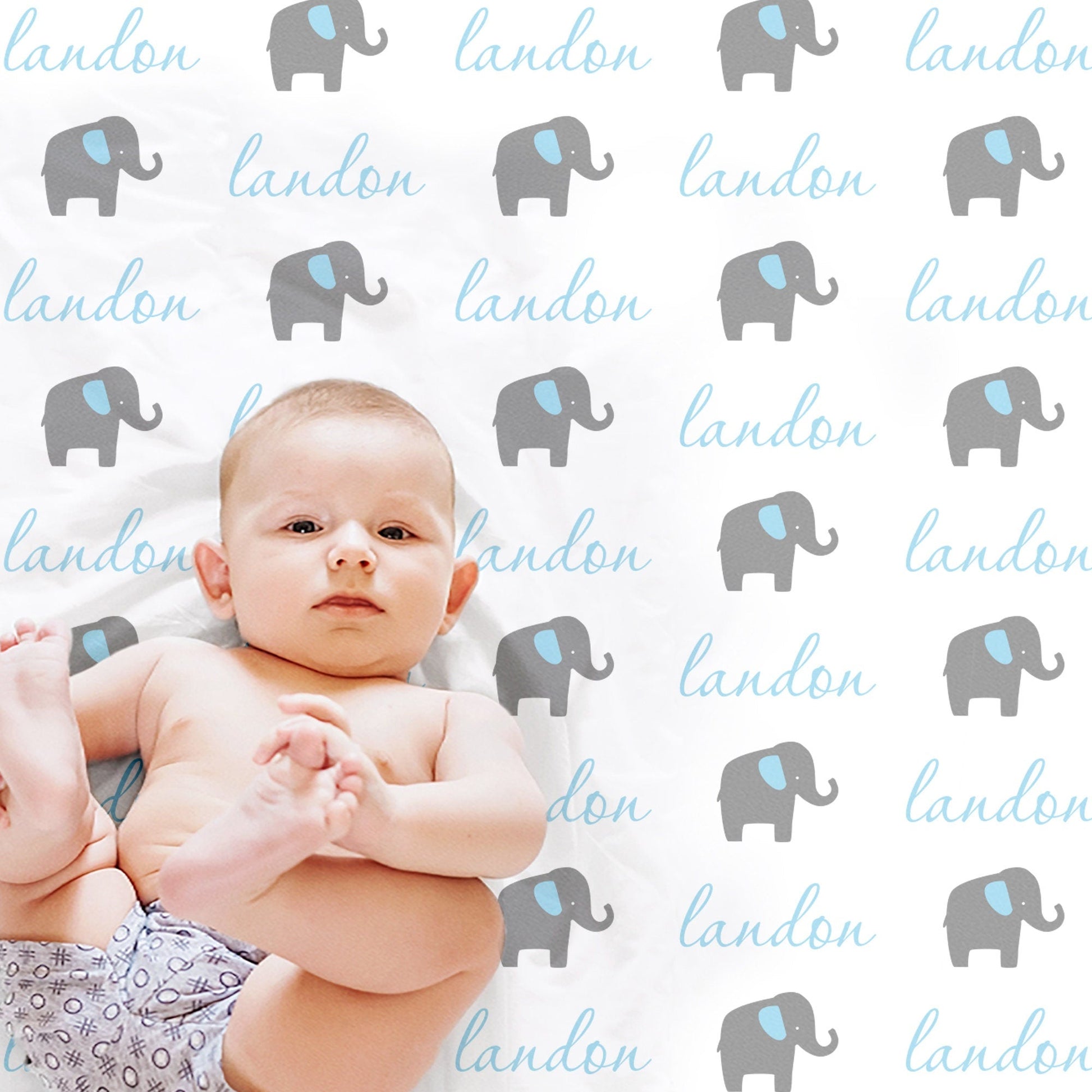 Personalized Elephant Baby Name Blanket Boy