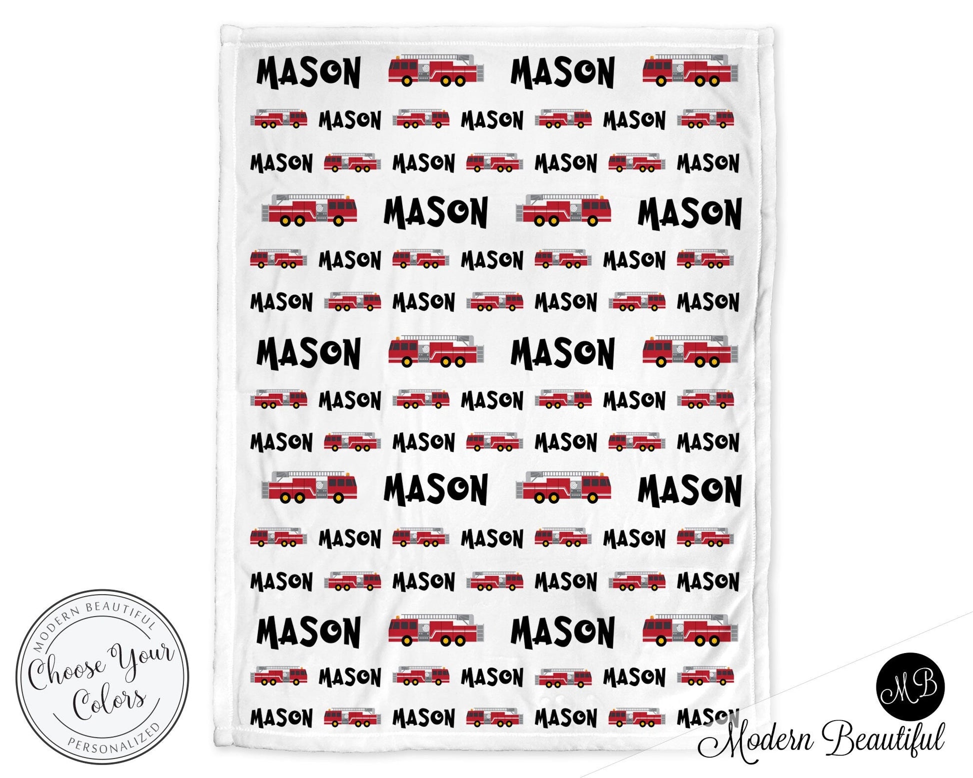 Personalized Fire Truck baby name blanket