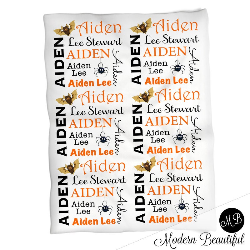 Personalized Halloween Baby Blanket Boy Newborn Name Gift with Bat and Spider