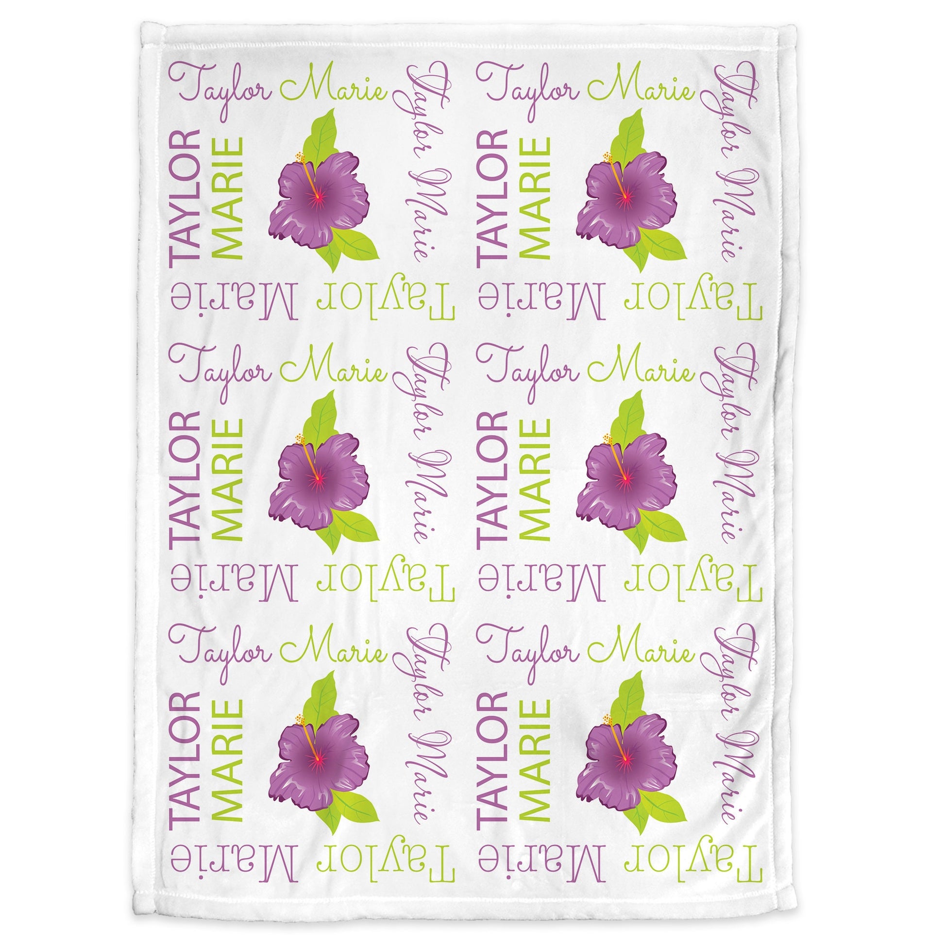 Personalized Hawaiian Hibiscus Baby Name Blanket Girl