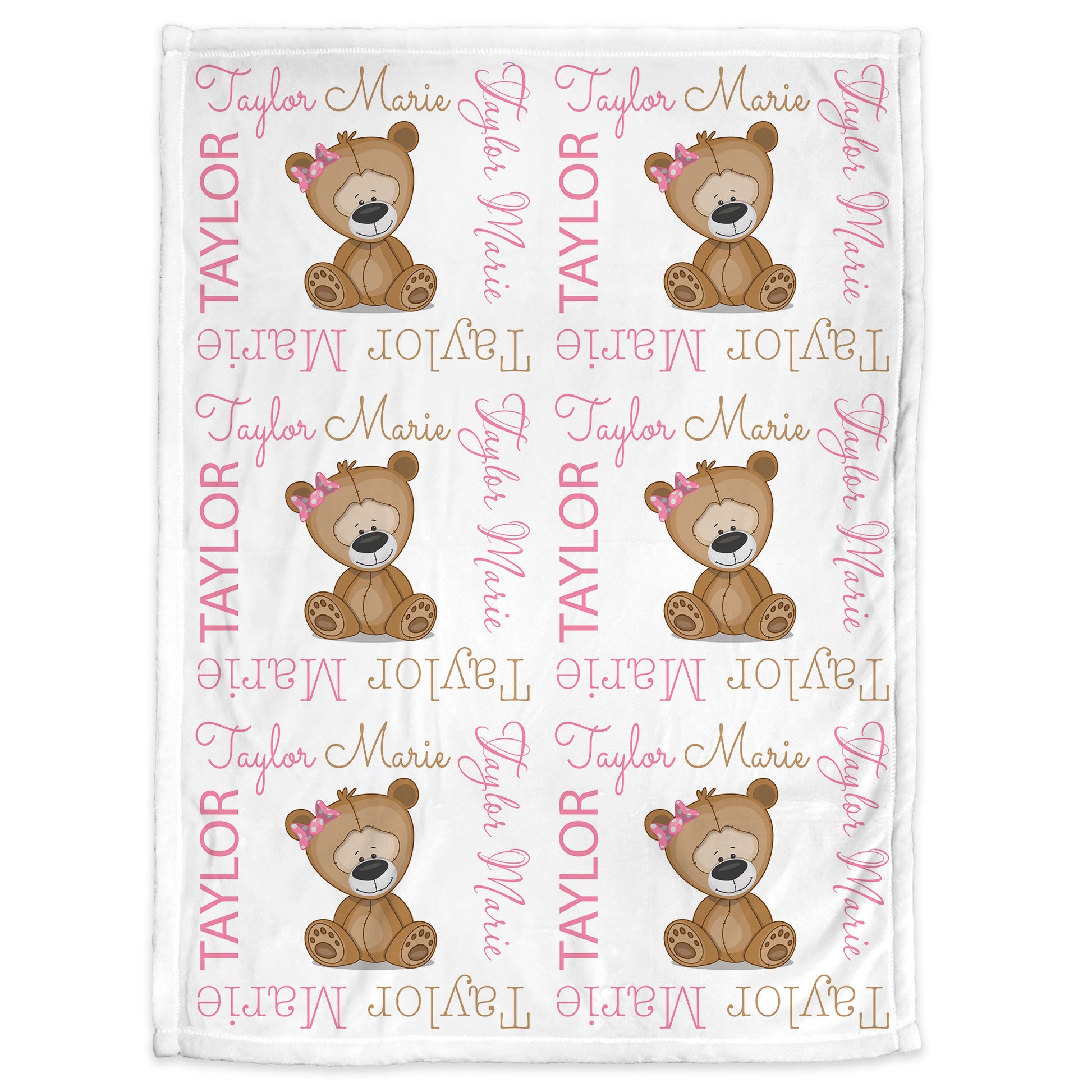Personalized Cute Teddy Bear Baby Name Blanket Girl