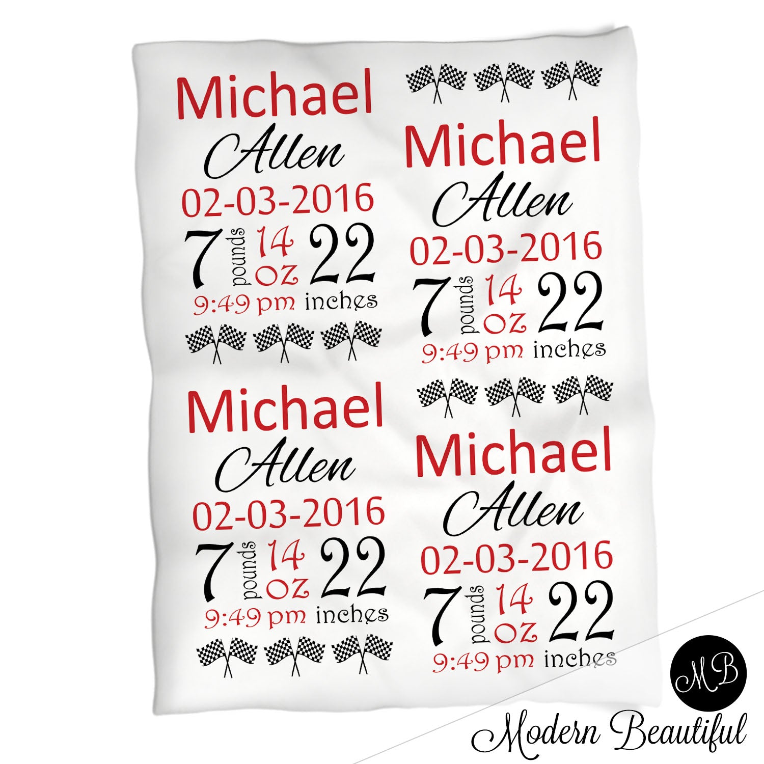 Racing baby boy stats blanket, red and black, race flag boy baby blanket, personalized drag racing baby blanket, baby stats blanket, boy or girl stats swaddle blanket, baby shower gift, choose colors.